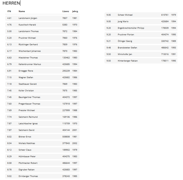 Spielplan Herren 2
