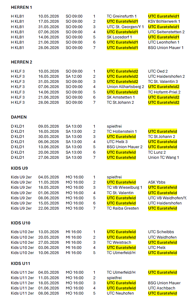 Spielplan Herren 1