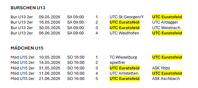 Spielplan Burschen U13